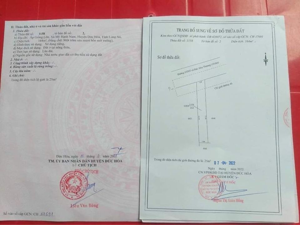 Ôm chủ gửi bán lô đất 5m x 33m mặt tiền đường nhựa giồng lớn mỹ hạnh nam đức hòa long an